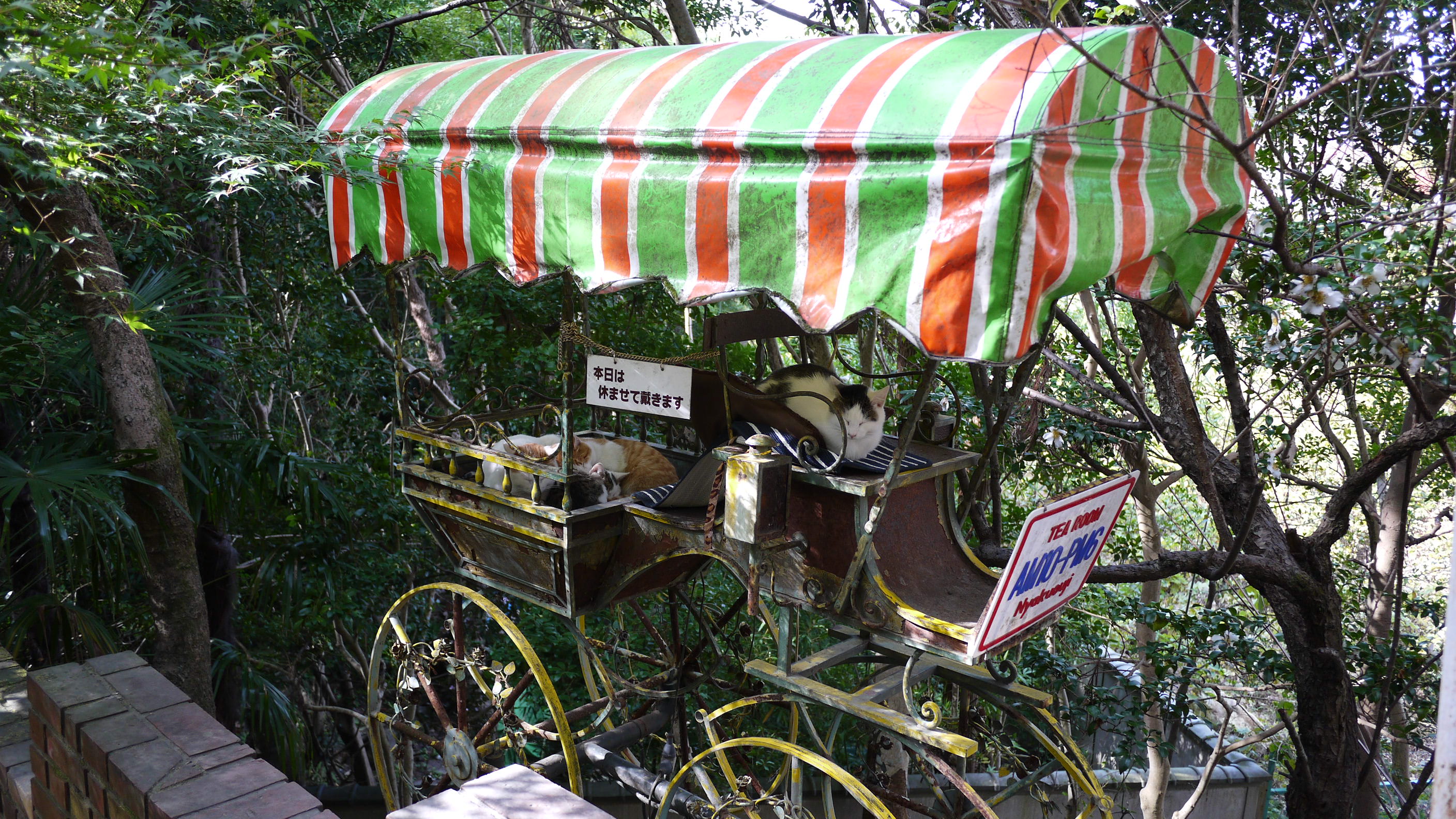 熊野若王子神社近くの哲学の道には、猫が多くいて道沿いには粋な“猫の休み所”も設けられています。