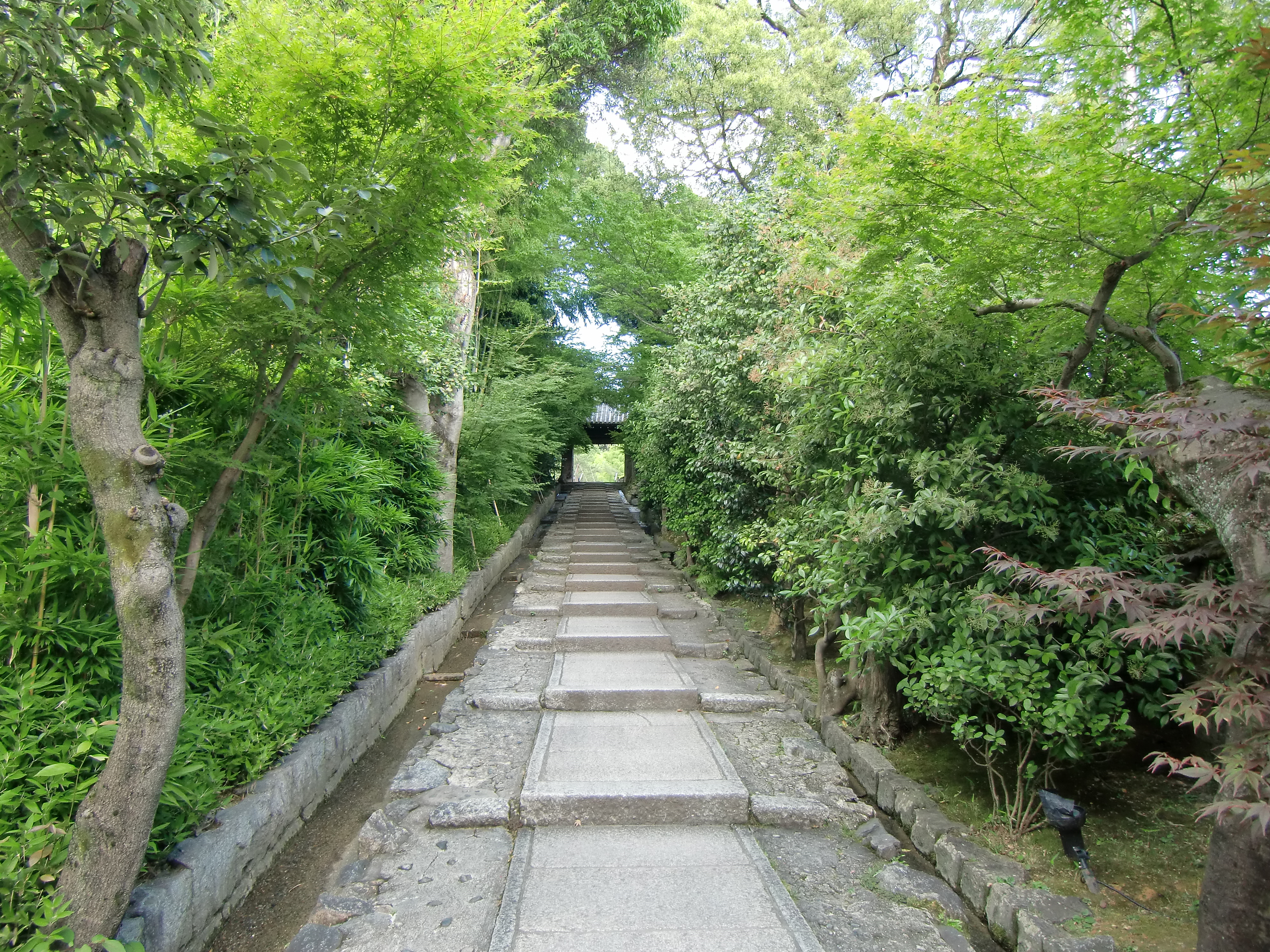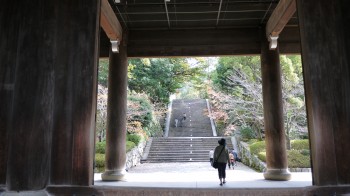 八坂神社の南側の道を丸山公園に沿って東へ歩くと長い階段が見えてきます。