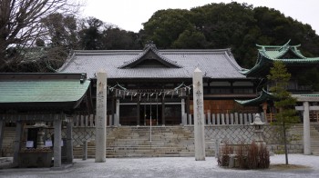 ただき、ふぐの下関を満喫して、市場の正面に鎮座する亀山八幡宮に向いました。