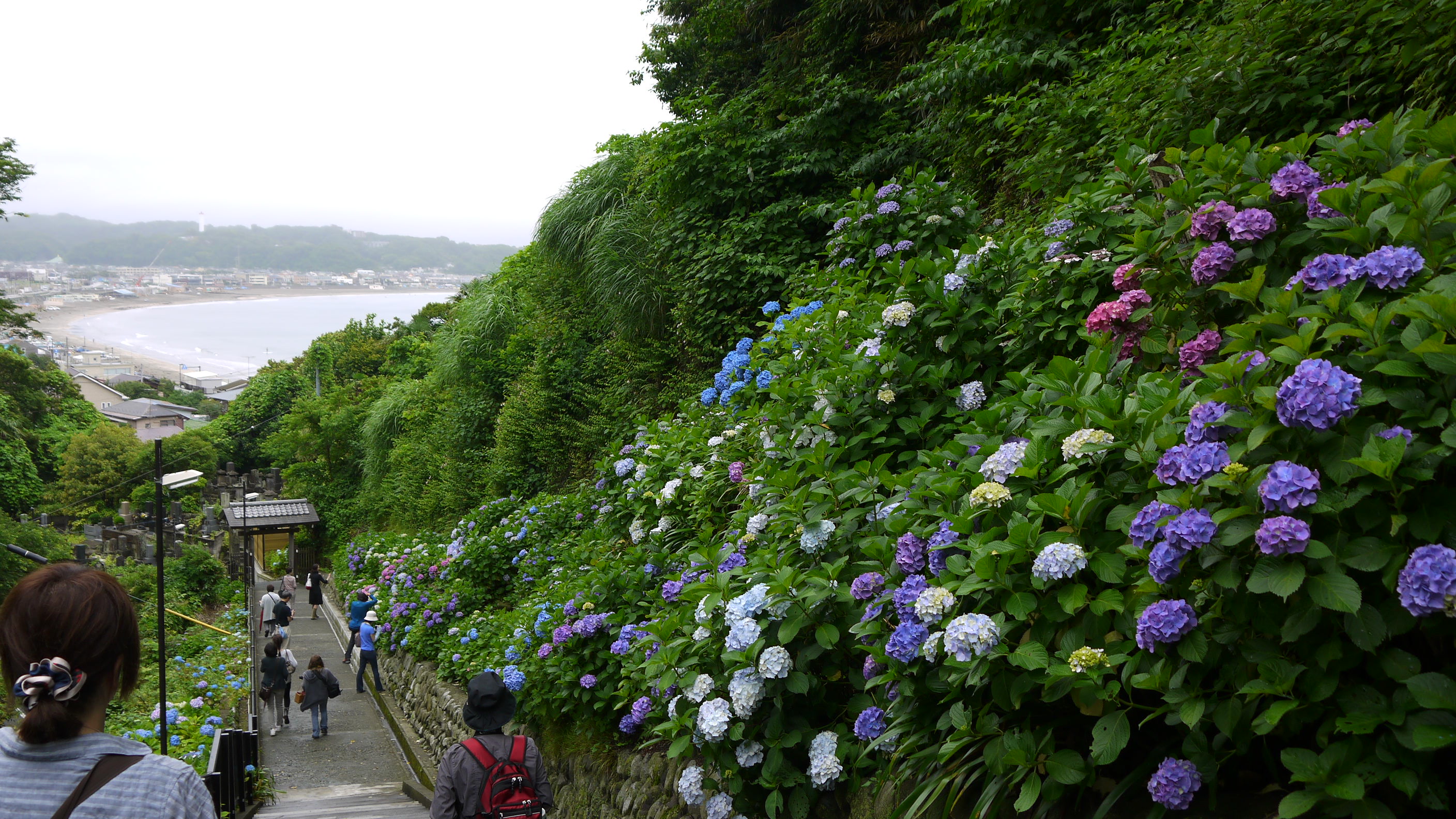 6月のあじさいのピーク時には、最寄りの極楽寺の駅まで紫陽花見物の観光客の