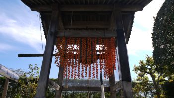 鐘楼には、この地域の名物、干し柿がつるされていました。